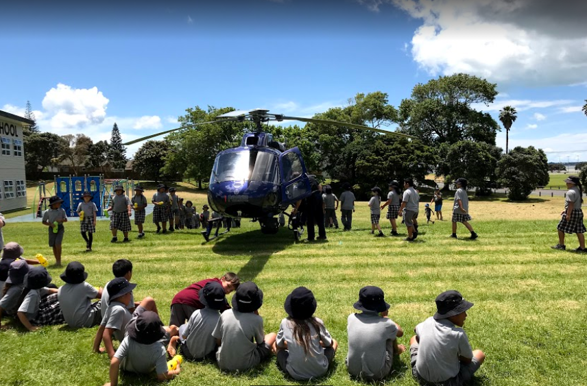Today at Panmure Bridge School got a huge surprises from some police officers in the Community. Three police officers came down is the helicopter to explain to us how a helicopter works. Most of the school was wondering what the big thing attached to the helicopter was, the police officer explained to us what is was he said it was a camera it cost $850,000. It can also find people that are lost at day and at night. Did you know that the police helicopter has 2 engines? We also got a visit from the police dogs. They showed us a few tricks on how they track people.